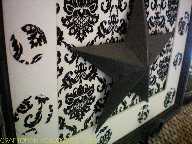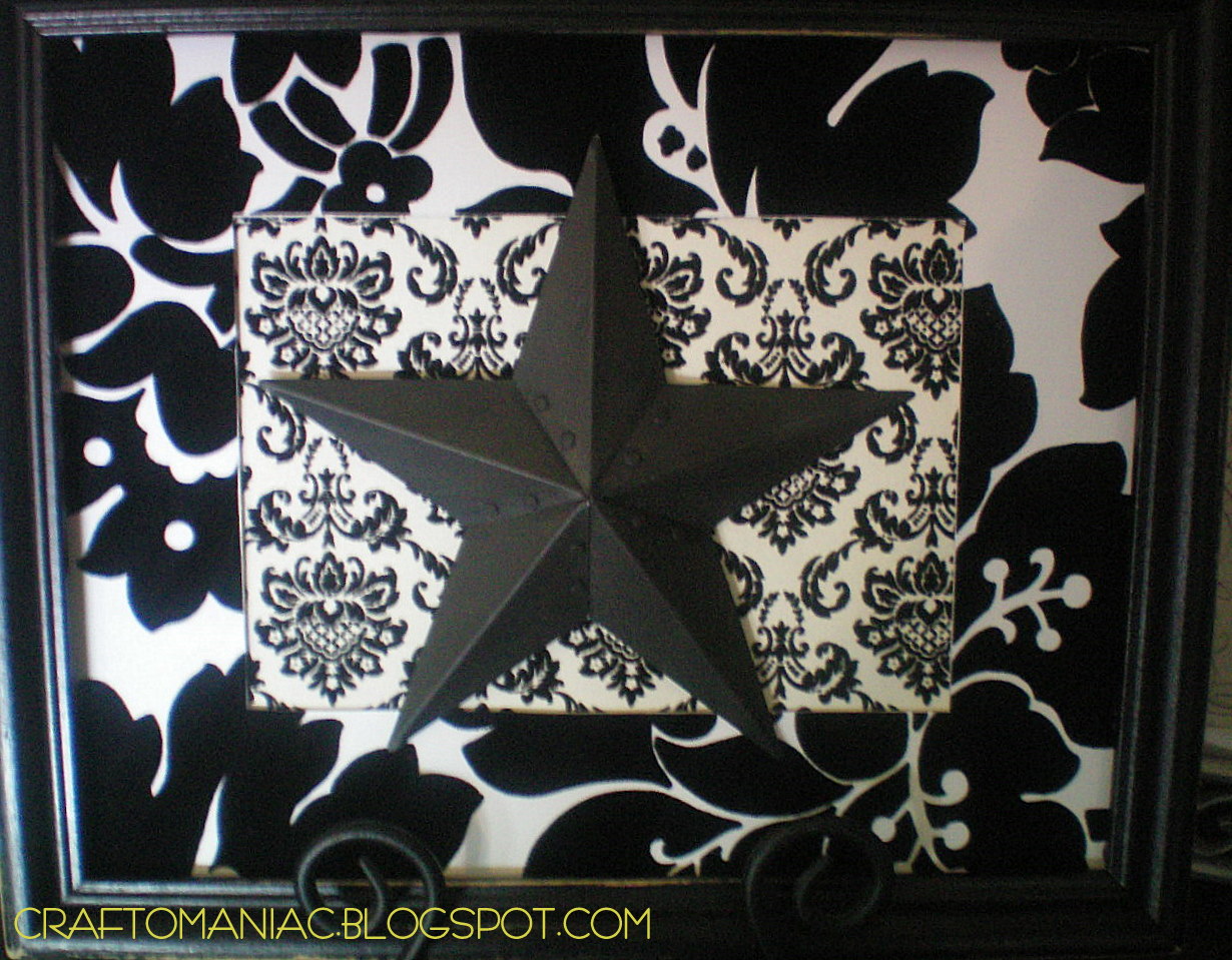 How to~ for this first one you see, I traced circles from objects I had that had clean circle edges. Then cut them out and used a glue stick to attach the circles to the mat. I used the scrappaer as a backing and taped it to the mat. I then wadded up a napkin and hot glued it to the back of the metal star, (the stars I have had for years) filling in that open semi deep space. Then added more hot glue to the top of the wadded napkin and centered it on the frame and pressed it down for a few seconds. I used my scissors (open them up) and shaved away the black paint to give it that “sanded” worn di-stressed look. SUPER EASY. You more or less can see how to make it just by looking at it.