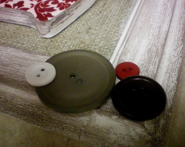 I dug out my stash of buttons, and played around with them until I liked the color choices, grouping, and the size of the buttons. Then I just used my glue gun and hot glued them on.