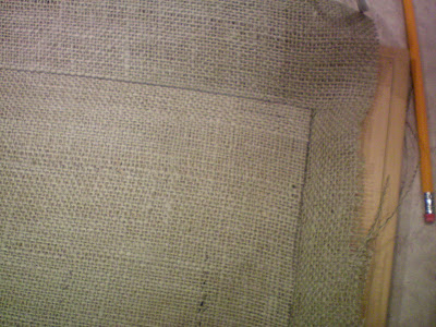 I cut out a semi messy square piece of burlap. I then layed it inside the plaque, held it tight to the sides and gently traced the outline of the plaque with a pencil.