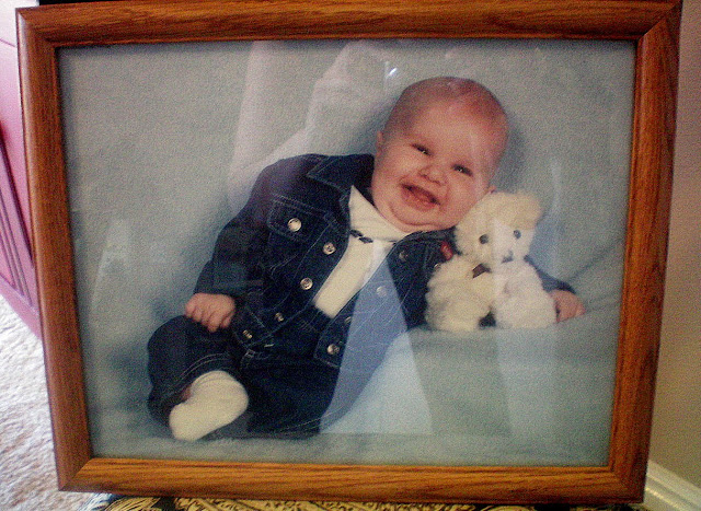 ARE YOU SMILING OR GIGGLING?… I can’t look at this pic. and not giggle. wink wink! This was a huge frame 10×13 or something like that. I dug it out of my garage with some other old frames. That is my darling chubby son Preston when he was 3 mos. old. He is “8” now. Mom got him to smile big … isn’t it so cute? I adore this pic. However, I recycled the frame. LET ME SHOW YOU HOW~