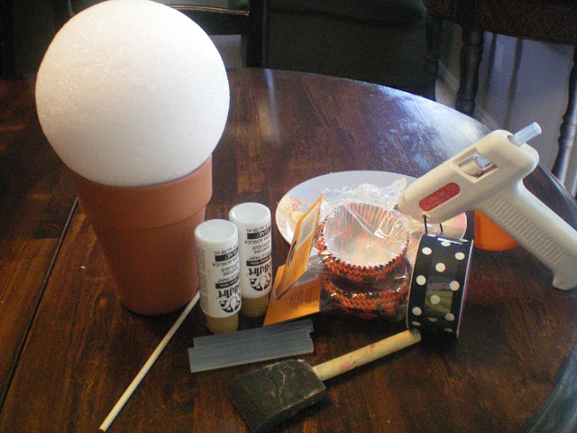 Here is my Halloween CupCake liner Topiary Tree. (If you remember my Fire Cracker Topiary its pretty much made the same.) I know I know, some of you have been giving me a hard time 😉 ON Halloween crafts, but this is how I GET AROUND A holiday… “CRAFTOMANIAC CRAZED” for Holiday Crafts…… I am only trying to inspire and give you all a good head start. WINKS! REMEMBER I HAVE A craft disorder.