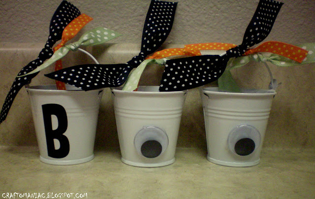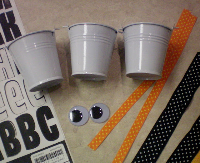YOU WILL~ tie ribbon in halloween colors around the pail handle’s, place stickers, or vinyl on the pails, and or hot glue Googly eyes! EASY PEASY!