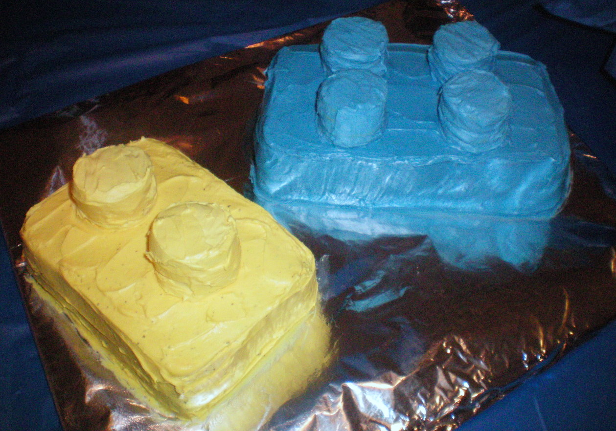 I think your lego cakes turned out fabulous! I love it! I decorated a graduation cake for my brother once and it was like the most embarrassing thing I have ever had my name to. My family still laughs about it to this day. It builds character. 🙂 But your cakes are no laughing matter. CREATIVE with the oreos!