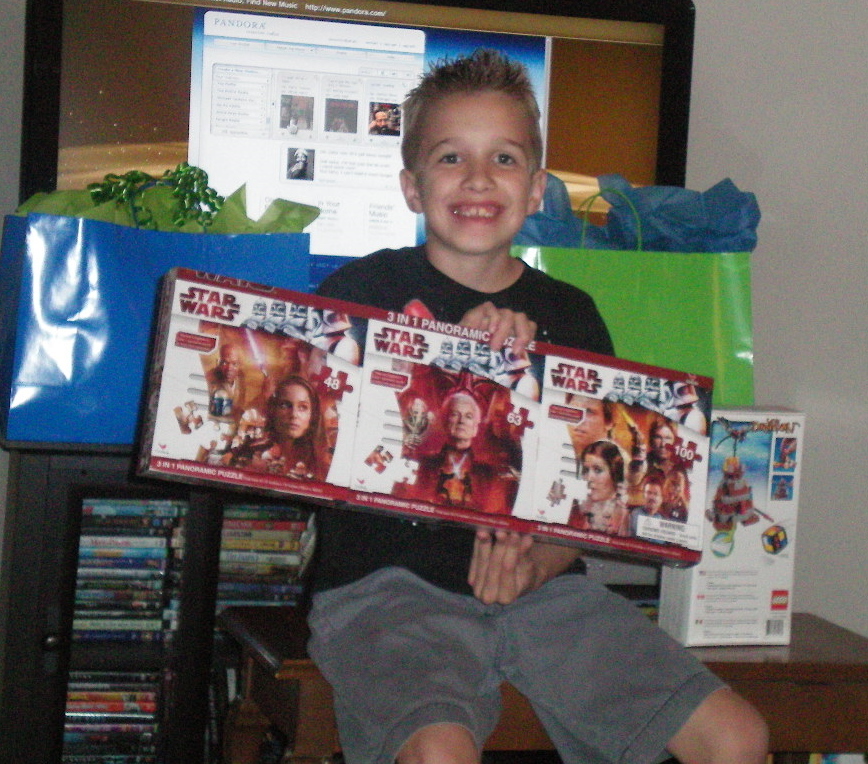 PLEASE don’t laugh at my LEGO cakes! I am almost embarrassed to show them on my craft blog! So NO’ they aren’t Ace of Cakes-cakes nor are they from a professional bakery. Not to mention I don’t do fondant either, nor do I know how. They are from Ma’s Kitchen and my hubby and son both were tickled over them. So….pat on my back that is all that matters to me. The cakes were baked in bread bans, and then I cut off the tops with a bread knife to make them flat. The yellow one I made smaller. I frosted two stacked double stuffed oreos to look like the lego pegs, then I placed them in the fridge for two hours to harden. After the cakes were cooled and the vanilla frosting was dyed I frosted the cakes, and finished by placing the oreo pegs on top. We had a nice dinner, then presents, then cake and ice cream, visits, laughter, and playing time with fun {new} toys. It was a family party with very important people we love.