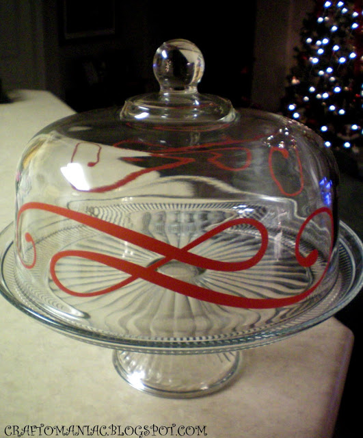 Get a little Holiday…. with your glass jars…. I was looking at my Cake/Punch Dome/Bowl and I had the idea of adding some festive scroll to it. It will work great too when Christmas is gone, because the red is a deep red and matches my colors. However, its a simple peel, if I decide I don’t want to keep it.