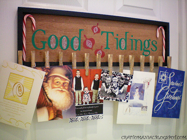 Today I created a Christmas card holder. I didn’t want to tape my cards to my laundry room door again this year. Lucky for me I found a board in my closet that has a saying on the other side, but I had never hung or used it. So I flipped it over and got to work.