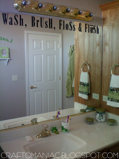 That’s cute! I like your froggy bathroom. My mom just had me do a vinyl “flush” sticker to put in my little brothers bathroom. The reminder works though 🙂