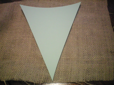 To make the pennant banner. I cut out a 51/2 inch paper pennant from my “Lyrical Letters” Cricut Cartridge. Then I traced the pennant onto the burlap several times with a sharpie and the sis cut them all out.
