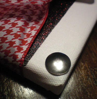 What a great job you did on it! It looks wonderful! Love the silver studs on the corners! I’ve always wanted some ideas to use for those blank canvas’ that you see at Walmart. It’s nice to see some new ideas besides just painting on them! 🙂 – Karen