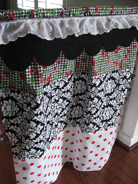 on the top piece–iron a hem flat and sew a straight stitch..this will hold the tension rod