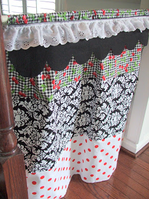 A simple tension rod along with a few fabric scraps….makes for loads of fun! Here is how I did it…