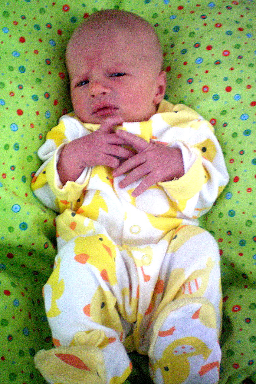 OHHHHHHH! I just love the pic where he’s all curled up on his tummy with his legs tucked under him! And those ‘ducky’ feet — adorable!!! Congratulations!