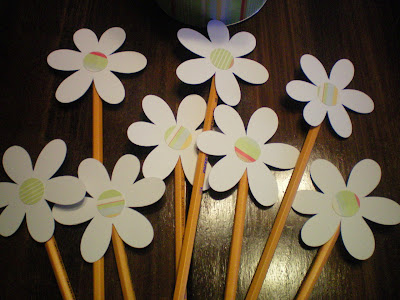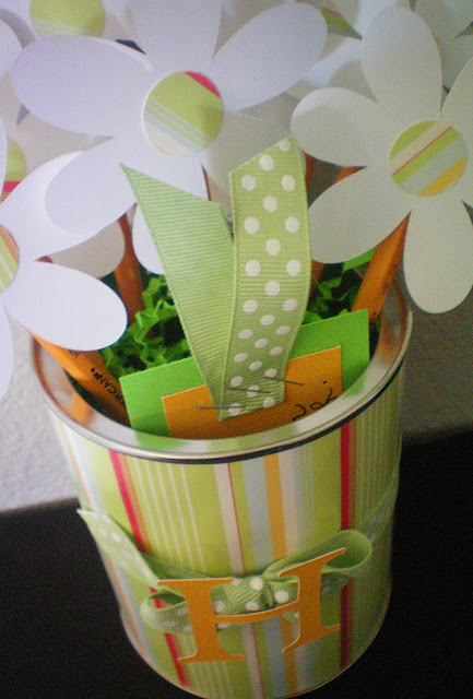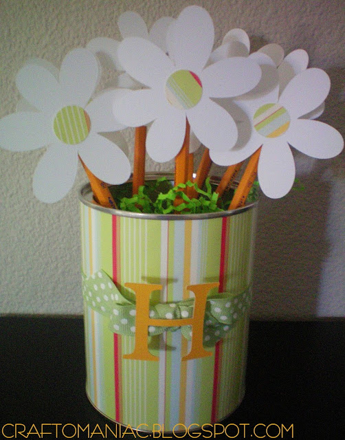 I made flower pencils in a recycled SLIM FAST can/pot.