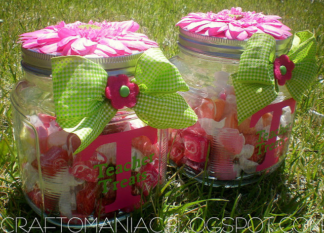 Here is one jar with Vinyl cut from my Cricut using the Platinum Schoolbook.