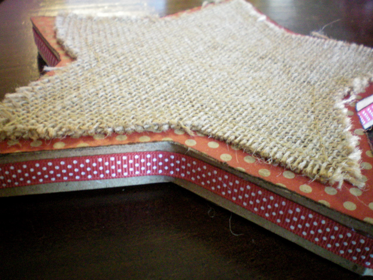 I hot glued the cute Canvas Corp. Burlap star to the top of the box.
