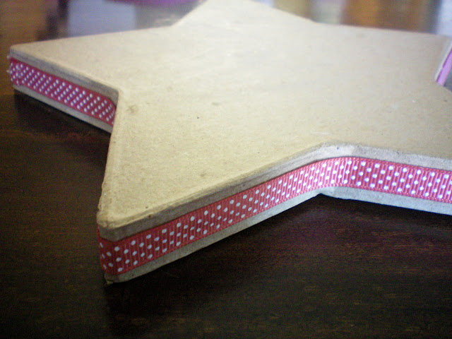 AT FIRST NOTHING DONE. I began by hot glued the polka dot ribbon around the lip of both the star lids.
