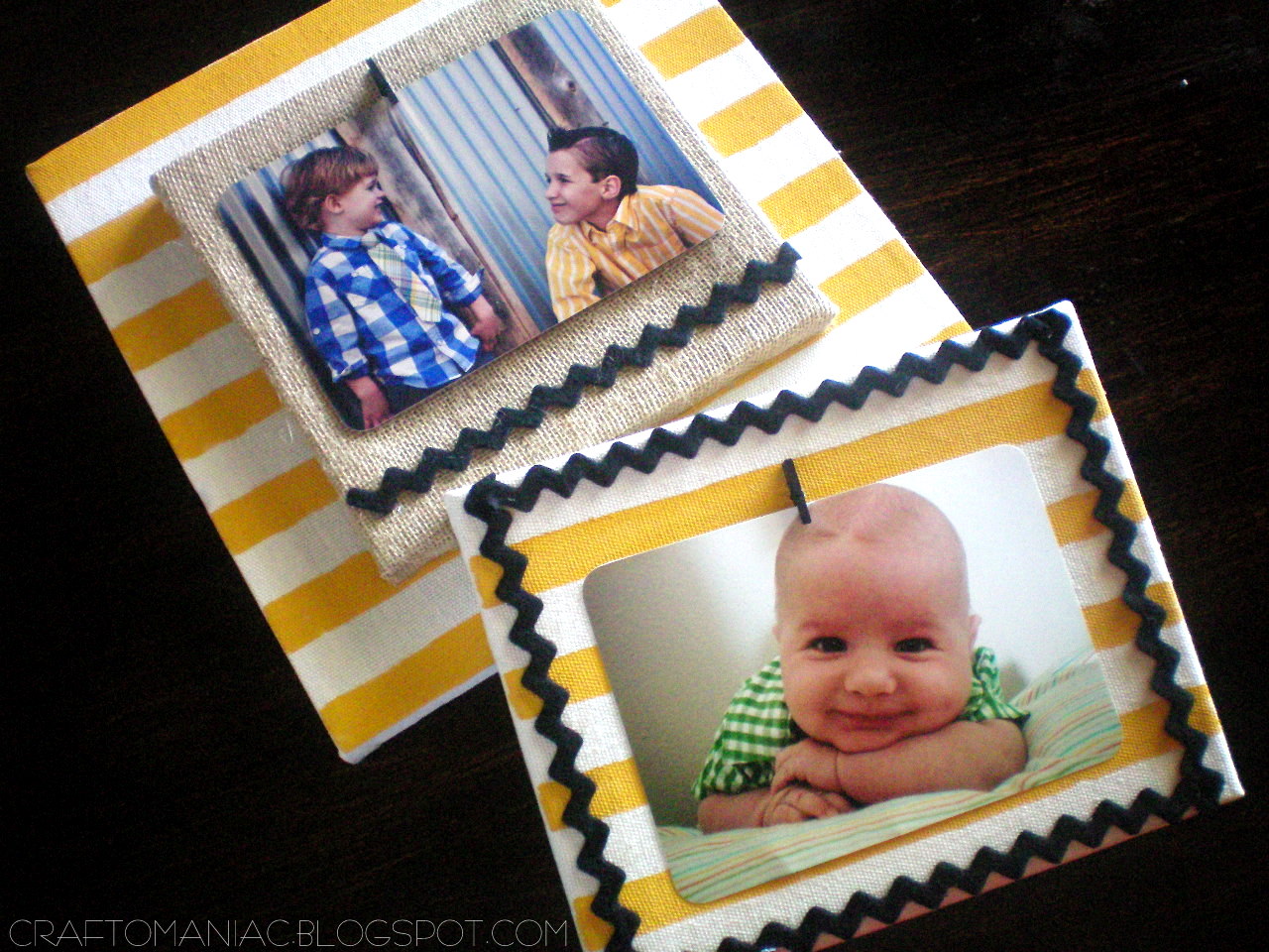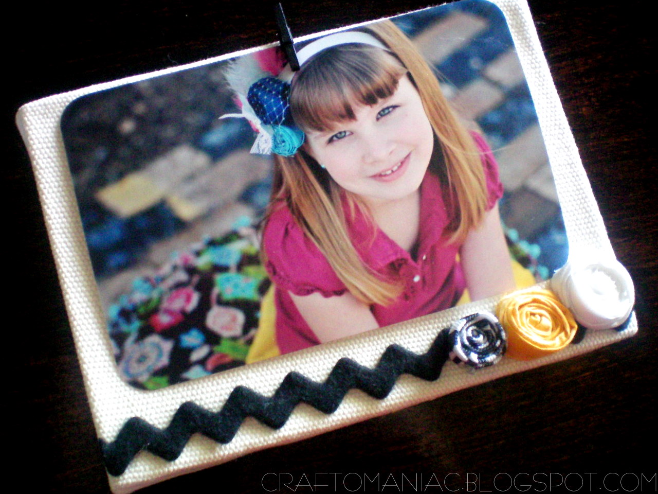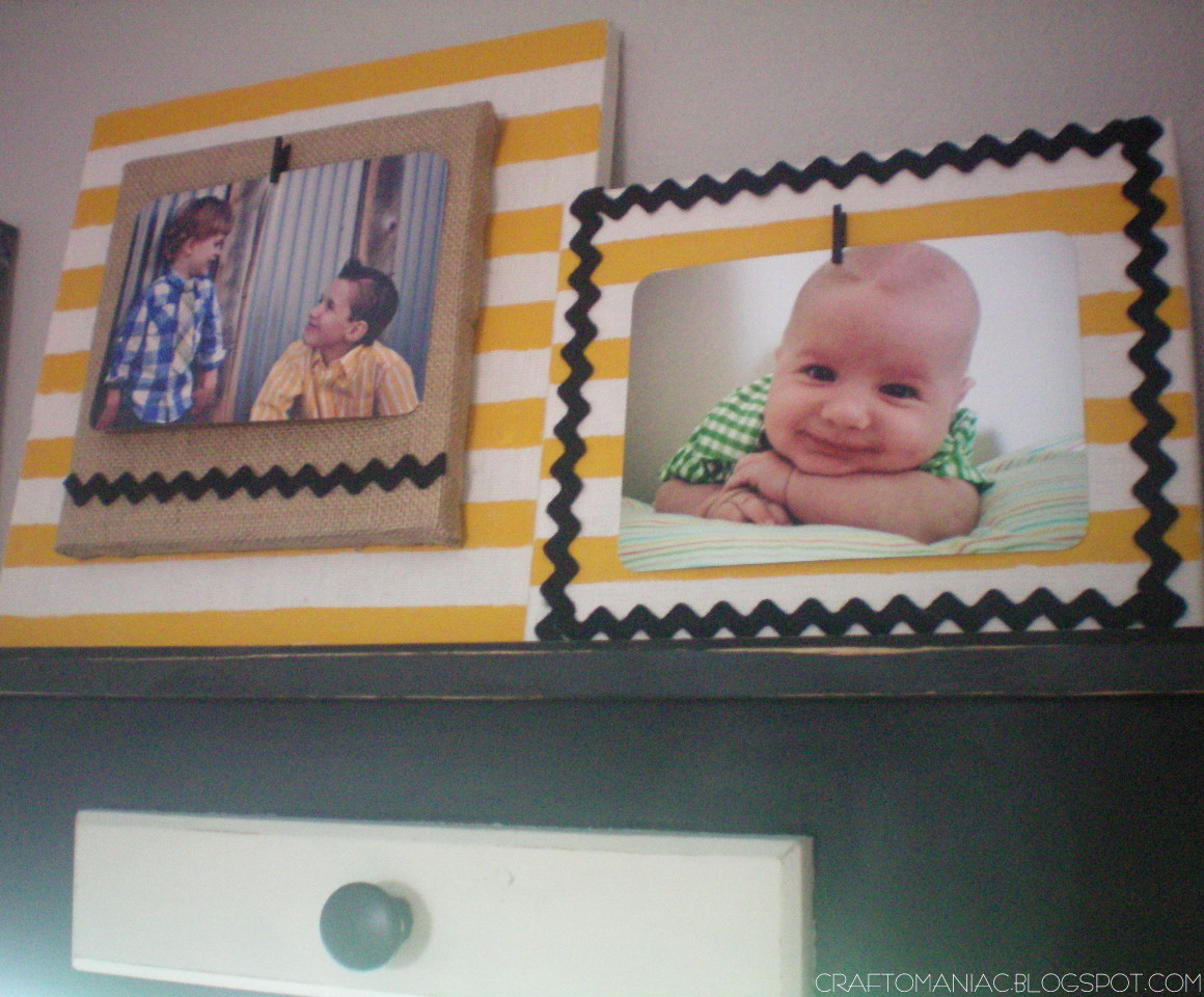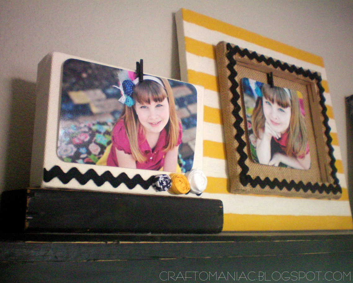 Ok, then I USED cute {{felt ric rac}} that totally looks like CHEVRON woop. I hot glued the ric rac where I wanted it, made a few rolled rosettes for Miss Priss hot glued them on along with some burlap plaques and mini clothes pins all from Canvas Corp. SUPER EASY.