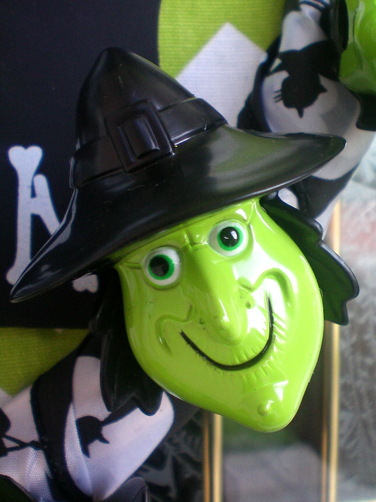 Green plastic witch heads- were originally bobble heads on top of pumpkins filled with bubble gum, I used my own witch brewed powers and ripped the heads off.Cackle Cackle Cackle.