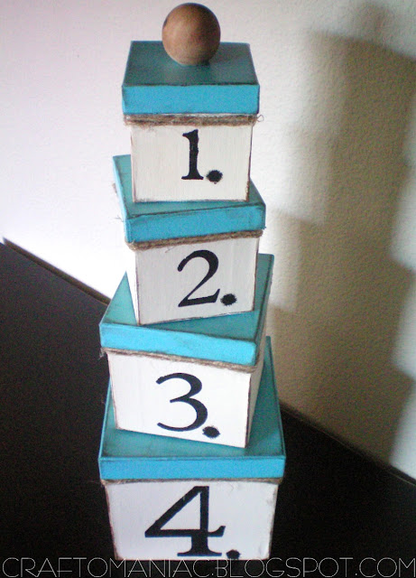 I remember when you did the boxes last year in red and I loved them. BUT, I love them even more now with the distressing and the blue!