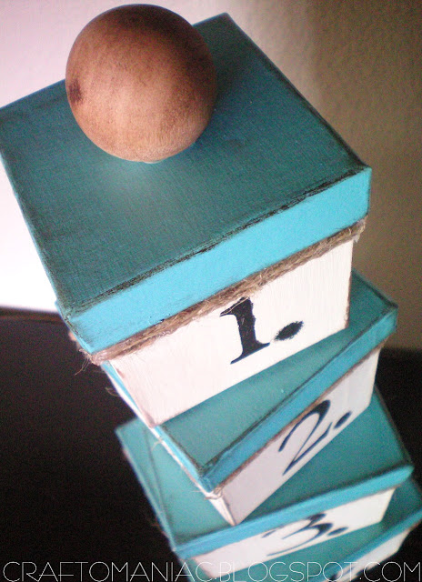 I used a sponge applicator to push down into the ink pad and then wipe over the wood knob that I hot glued to the top of the No. 1 box.