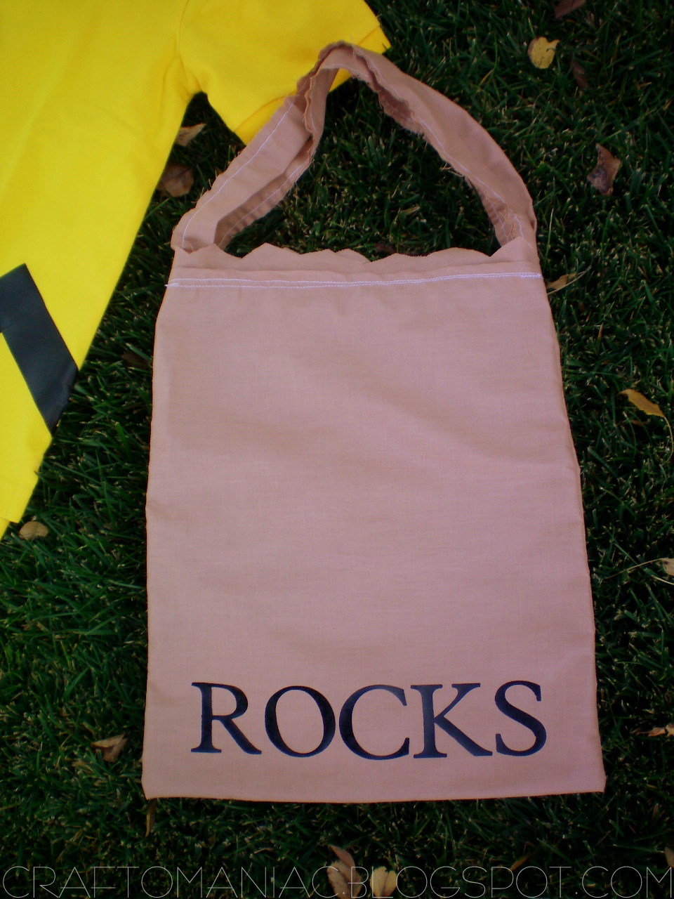 In the Great Pumpkin Charlie Brown, CB has a brown paper sack and all he gets is rocks. So I had to make a Trick or Treat bag to go with Charlie Brown. I used simple material winged the whole bag, and sewed it together. I used more heat transfer vinyl to iron on “ROCKS.”