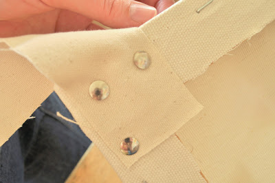 Next I cut a long piece of canvas cloth fabric and used thumb tacks to tack the fabric to the back of the canvas board. Then I cut the fabric in the middle and tied a knot in the center for hanging.