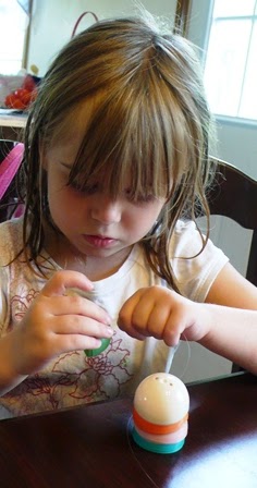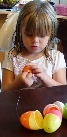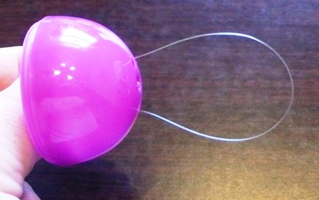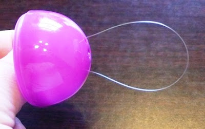 fishing line into one of the bottom eggs and tie it on the inside of the egg
