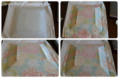 2. Lay your plate on the fabric and cut fabric around the plate leaving room on all edges. If you’d rather, you could also trace the fabric and cut it to exactly fit the plate.