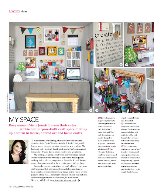 I was contacted a few months back from Mollie Makes Magazine. They loved my CRAFT NOOK, and I loved what they had to say, so it was “FEATURE” on!!!