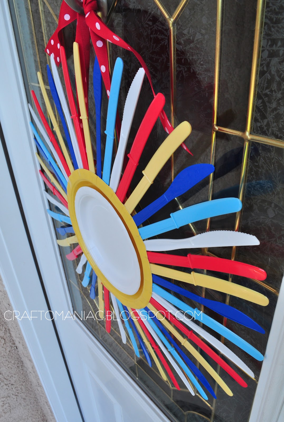 DIY Summer time Sunburst Wreath using Plastic Utensils