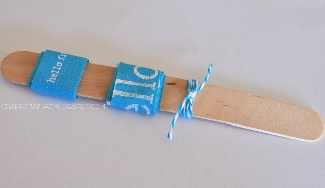 I wrapped two layers of the washi tape “hello friend” and two layers of the “hello” around a stick and then added some bakers twine.