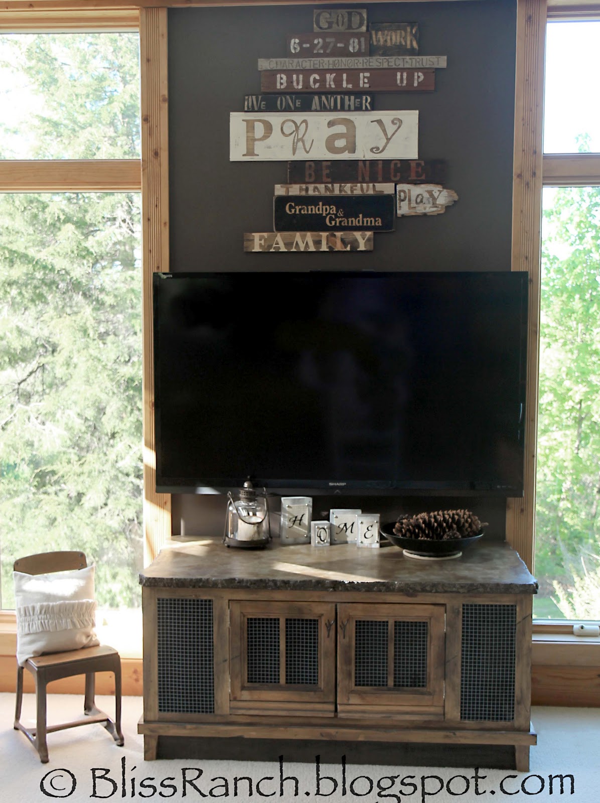 When the old tv cabinet left, it also left an empty space above the new tv. Light pours in this area till the sun leaves the sky – makes for a bright happy space (hard to take photos in). After Christmas the tv sat on a toy box for a few months till I ordered a hanging bracket for the wall. Then the project just sort of stopped waiting for further inspiration.