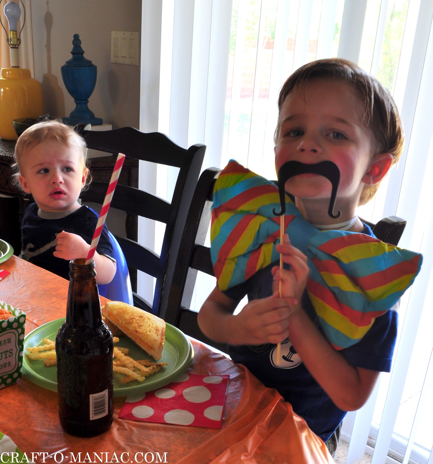 When everything was all prepared and set up. I grab a mustache stick placed it above my lips… and in my BEST carnival announcing “man” voice… welcomed all the kids to the fun, exciting, carnival lunch.
