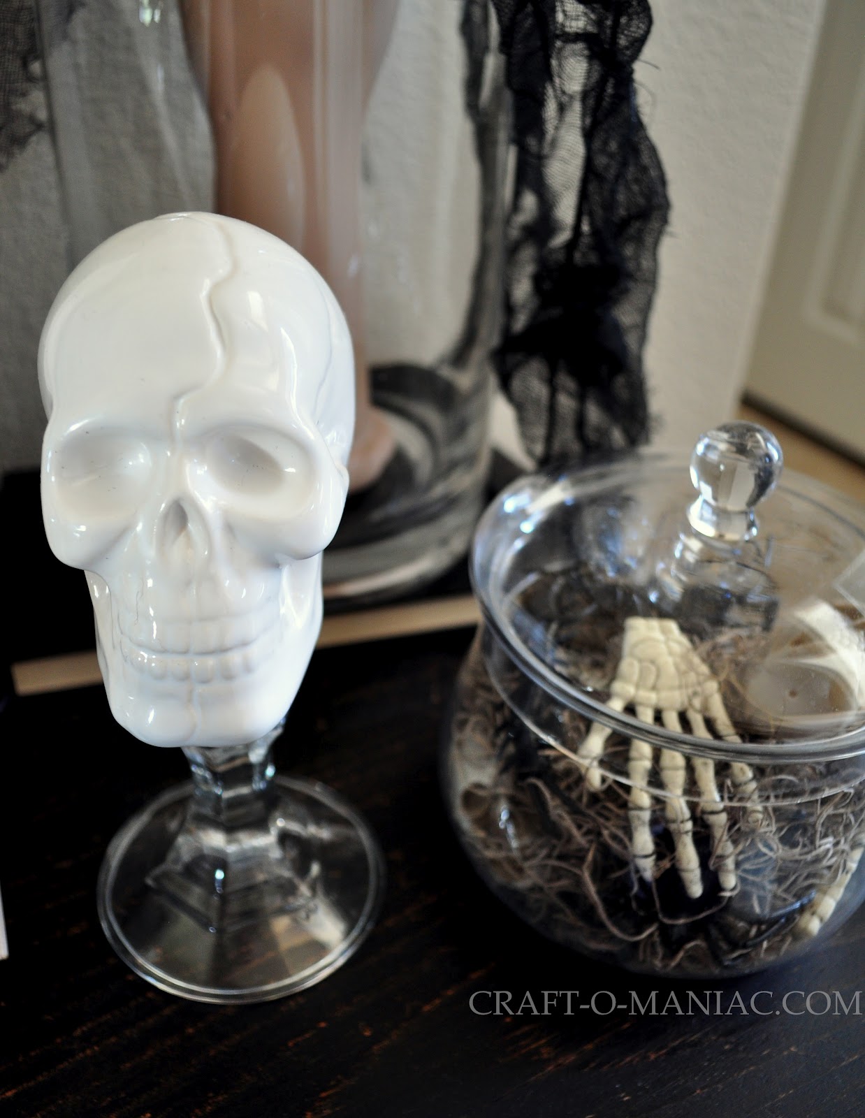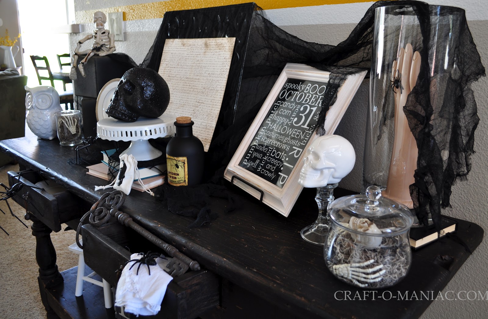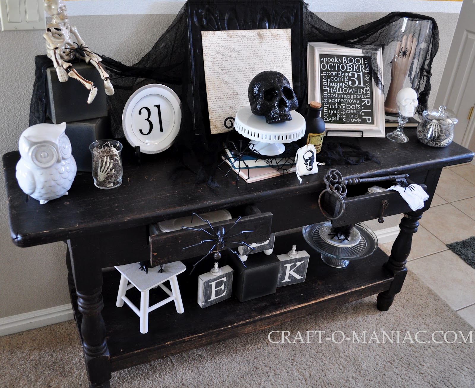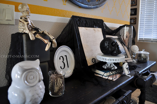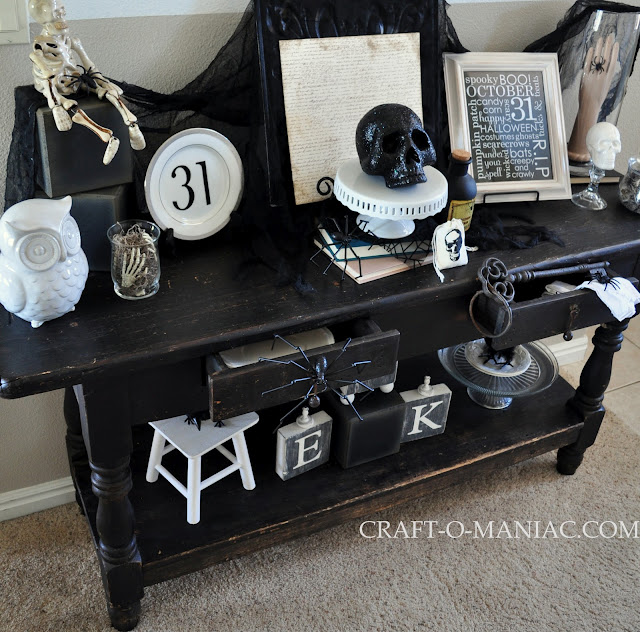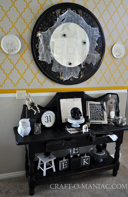 CraftOManiac Monday with my Black and White Halloween Entry Table