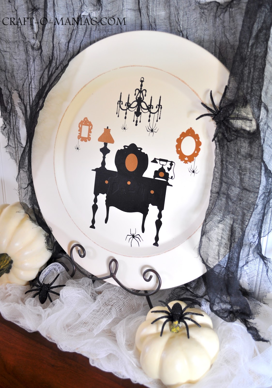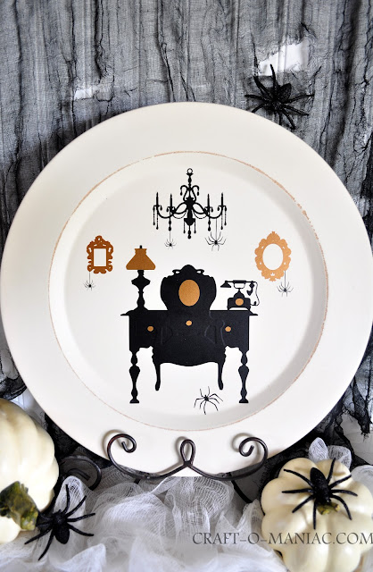 If you have ever been to Disneyland, and have rode the CREEPY AND FUN ride “Tower of Terror”, then you may see why I think this plate reminds me of the creepy hotel part of the ride and attraction. The hotel part of the attraction that you walk through is old and Victorian like. Its creepy and COVERED in cobwebs. Its an old spooky Haunted looking Hotel. I LOVE IT. Oh’ man I am feeling nostalgia and wanting to go back to Disneyland right now. winks.