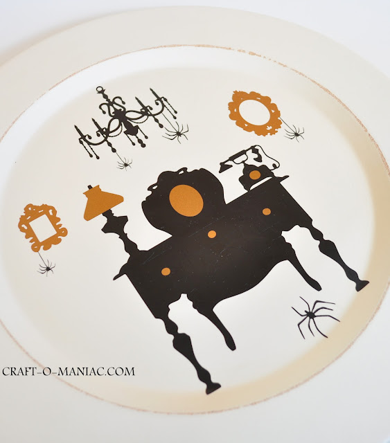 I used the Home Decor Cartridge, the Lyrical Letters Cartridge and the Sentimentals Cartridge to create this Tower of Terror Hotel looking plate.