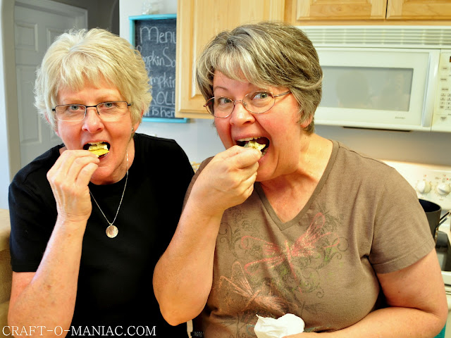 My mil (i adore) in brown and her sister Becky (adore too) in black. They were hogging down on the dip too.. DUH!