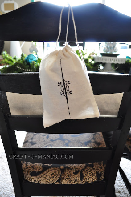 I love the use of the cotton bags on the chairs as gifts for the guests. Really nice touch!