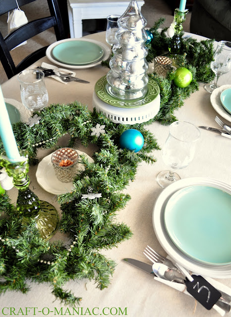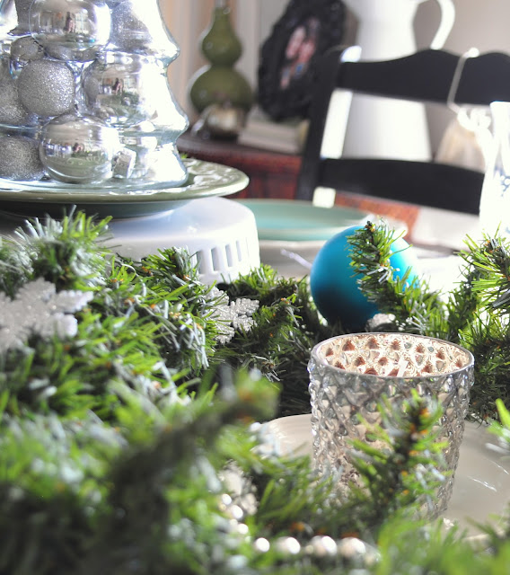 Holiday Tablescape in Turquoise, Green, and Natural Elements