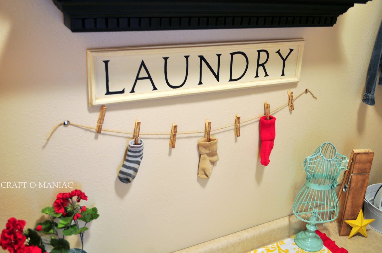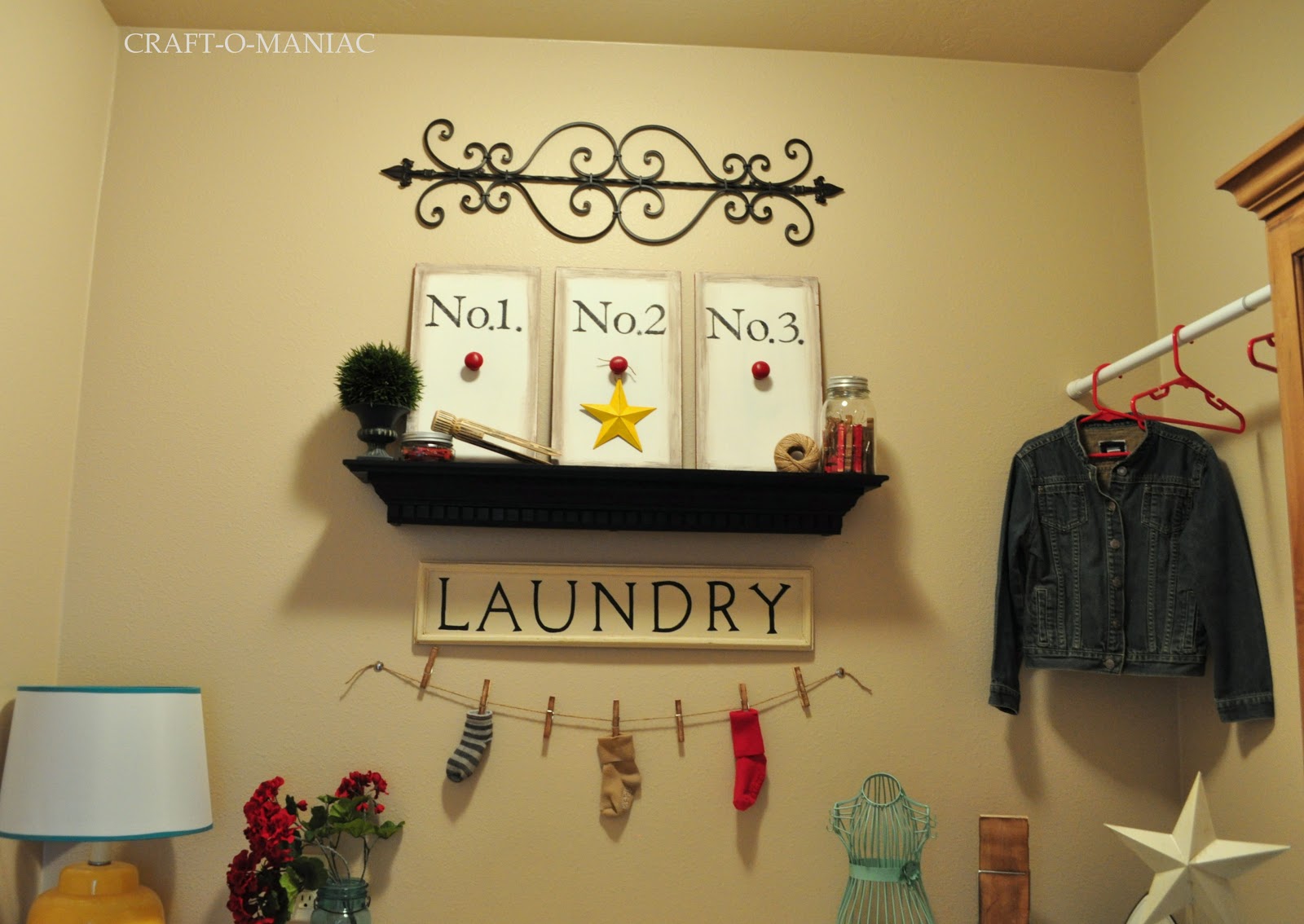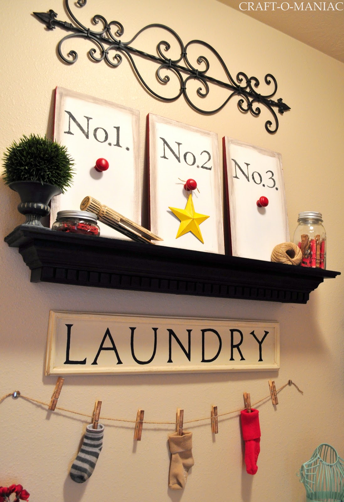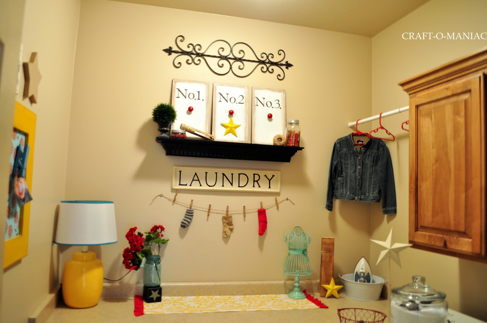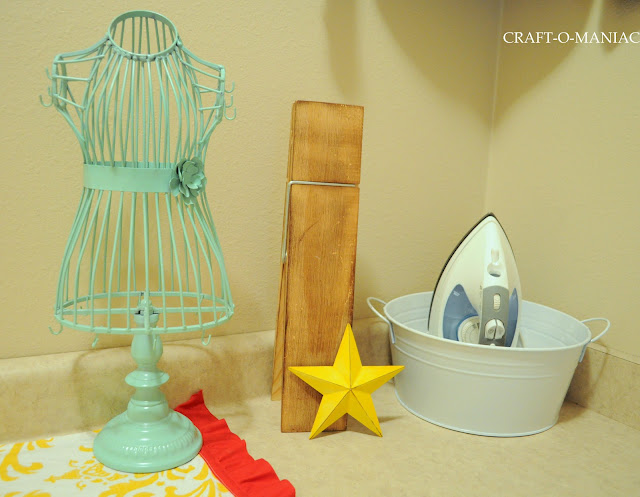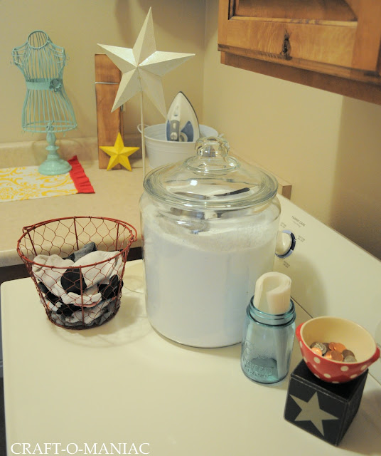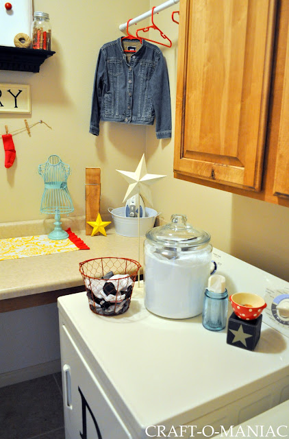 So here is the Laundry Room. I didn’t buy one thing for this room, I shopped my home and used what I had, so I think that is the best part. “FREE!”