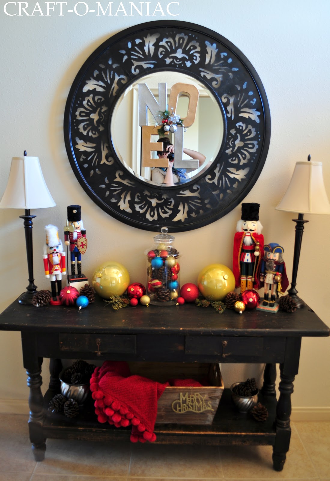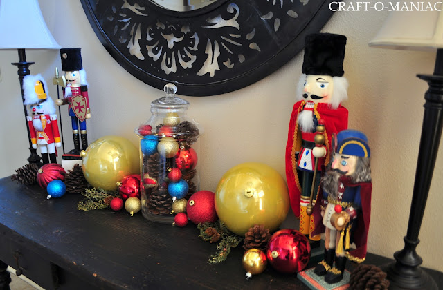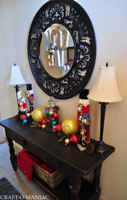 Today I am going to share with you my Christmas Entryway. I couldn’t for the life of me decide what to do with my entryway table, but eventually decided that some of my Nutcracker collection needed to adorn my table.
