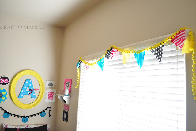 I made the fabric pom pom bunting. Its just cut fabric and I sewed the pom pom fringe to it.