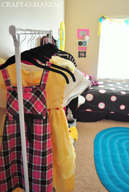 Bella is such a good mix of tom boy and girly girl. She can play with her brothers and get dirty and even burp and laugh about it (eye roll). Then she can be girly and fun, which I love since she is my only girl. Bella loves to dress up and act out her movies, she will dress up to match the roll of the girl character in a movie and then she will act out the scenes as the movie plays. Its so fun to watch, she really cracks me up. So I kinda went with a dress up girly girl look to her “side” of the room. She has had lots of fun acting and dressing up in front of that long mirror, and she is just tickled and in love with her new space.