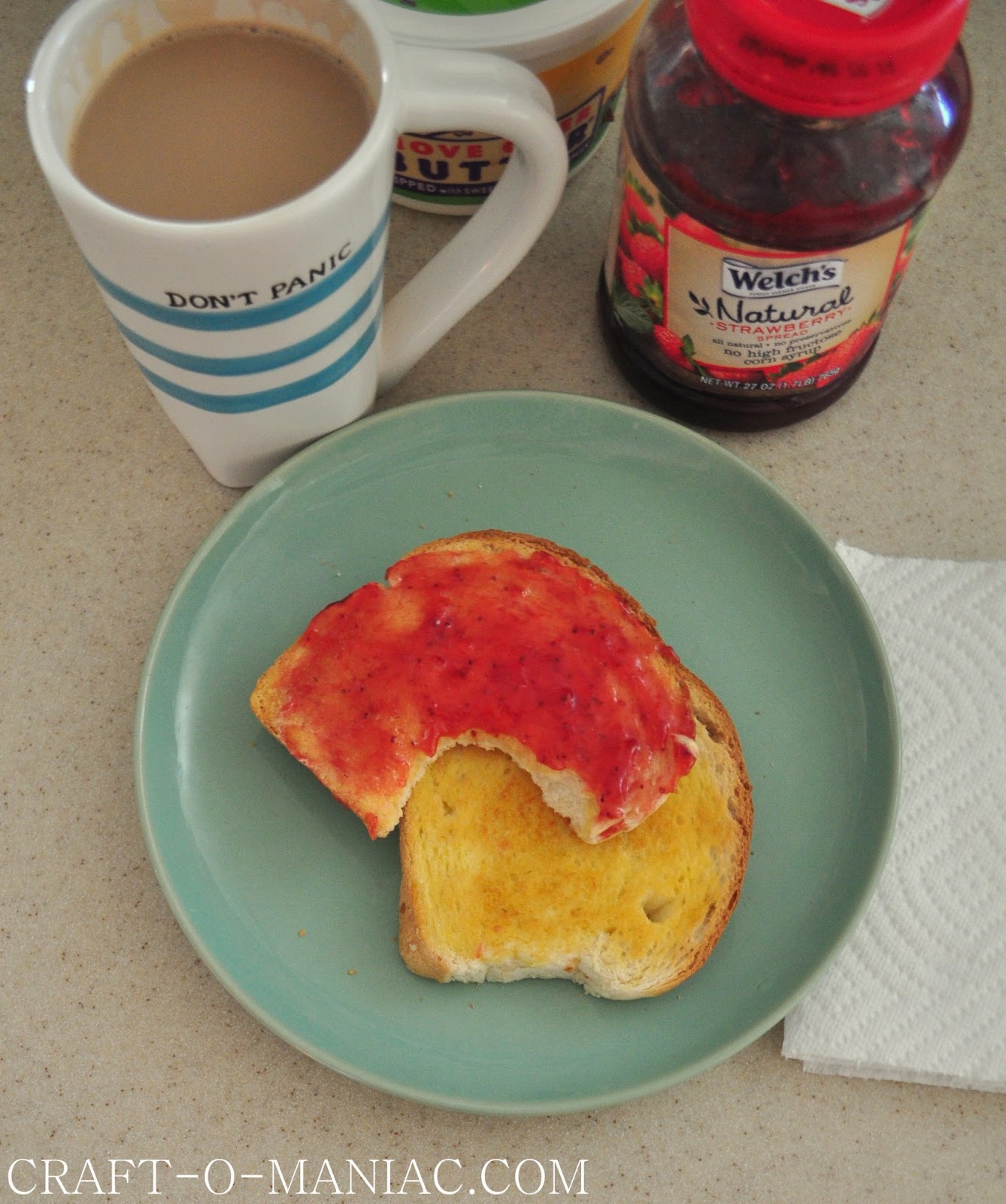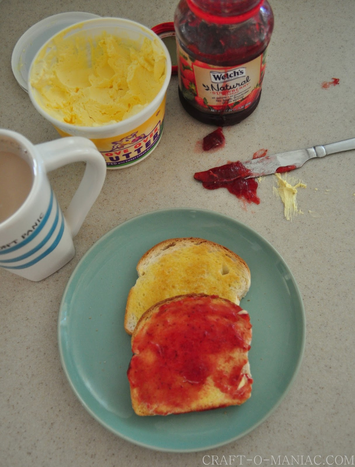 Have any of your kids and/or you, made peanut butter and jam or toast and jam? and had jam get all over the place…. Like “PLOP” a giant drip falls off the butter knife and onto the counter, and even down the jam jar…. “NICE” well in my house this happens all to often, as my older kids make their own peanut butter and jam and their own toast. I tell you, you can’t clean up that sticky (settled for sometime) jam off the counter with a dry paper towel. Nope’ you need a clean soapy rag to get the job done right.
