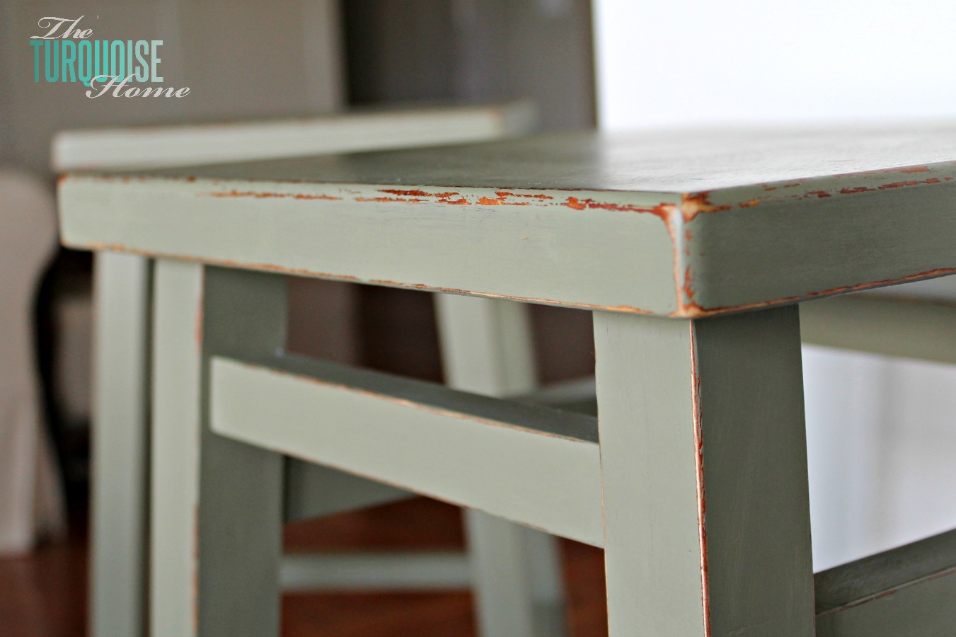 The Turquoise Home- DIY Chippy Painted Bar stools Source here