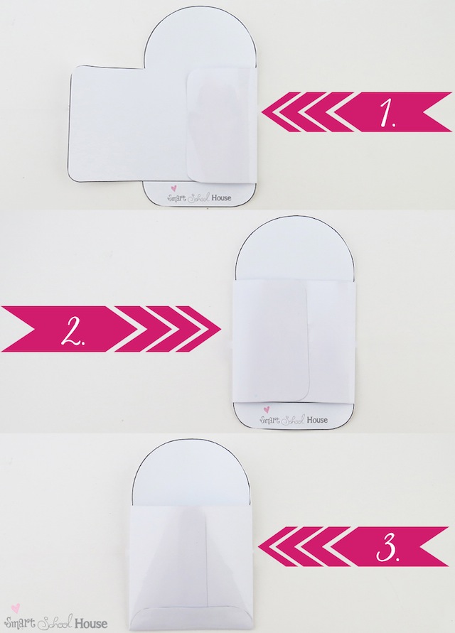 Now that you have the template ready in the white board material, next comes the folding part. I’ve made these visual directions for you below. I recommend using some sort of quick drying glue to hold the sides together).