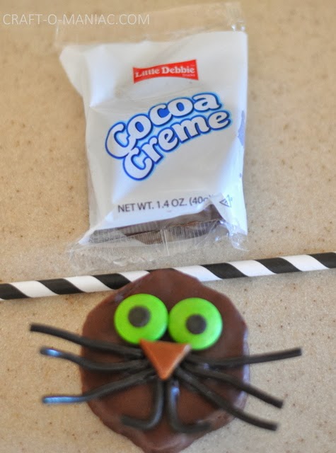 Hello Friends, today I am going to share with you some fun and cute Chocolate Cat Halloween Treats. I was at the store the other day and I saw the cute “monster” if you will, candy eyes. I haven’t seen them before, so I had to grab them and make something with them. I new I had the candy/baking licorice at home and when I put the eyes and licorice together I thought “Cats”.. something cute with cats!” So I headed to the candy and boxed treat sections and started looking. I ended up getting the Little Debbie chocolate cakes. I would of loved using the Hostess Ding Dongs as well, but we didn’t have those. Anyway they were fun to make, and I just made some for my children for a sweet Halloween treat to enjoy after dinner.