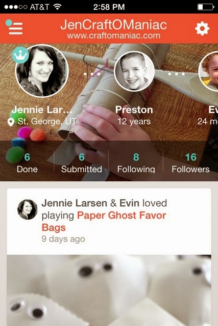 Once you download the App you can create a profile for yourself aka the parent, and then add your children. You can upload creative, fun, easy crafts, and activities that your young children can do. You can then share them on your profile, follow others, and even search for fun activities for your own children to do indoor or outdoors on the Knoala App. I am going to share some screen shot images from my i phone showing you just how cute and fun this is. My kids love seeing their faces pop up on my phone. They love the fun music videos and the story telling options as well as the fun activities.