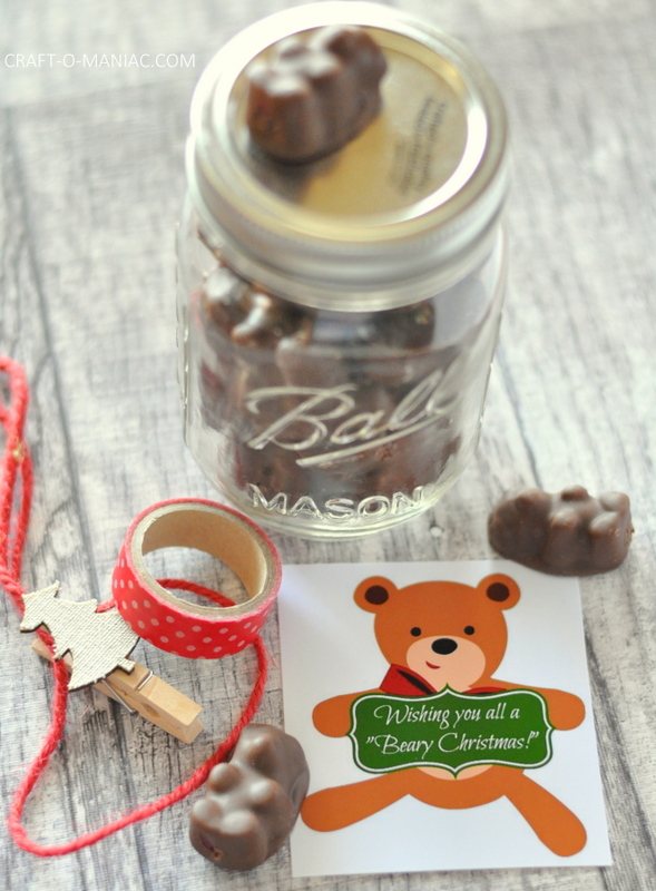 Today I am sharing these yummy and cute chocolate dipped cinnamon bears with FREE printable’s. Todays post is a Handmade Gift| Wishing you a “Beary Christmas.” Put your bears in a cute colored or non colored ball, or Kerr jar and you instantly have a handmade gift that any friend or neighbor would love. I will be honest, I am not a big fan of cinnamon bears, but you coat them in some milk chocolate and I am more then a fan.